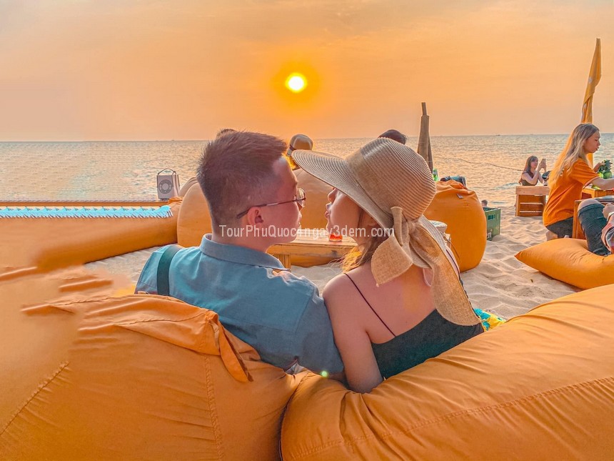 Đầu tiên mình đi chùa Hộ Quốc, đi xong quay ra mình chọn 1 bãi vắng trên đường đến chùa để tắm và chụp ảnh, ở đây có nhiều bãi vắng đẹp và nước biển trong xanh, sau đó mình đi Bãi Sao. Đầu giờ chiều mình di chuyển xuống An Thới, đi Hòn Thơm vé 150k/1 người, qua Hòn thì tắm biển chụp ảnh và thư giãn, sau khi quay về mình ghé Sunset Sanato ngắm hoàng hôn vé 70k/1 người.